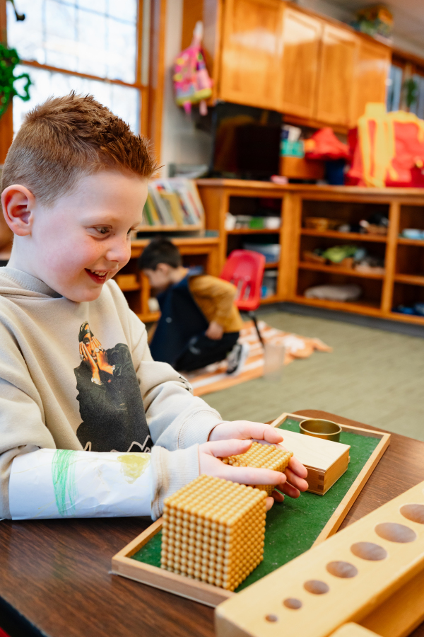 Children typically begin their Montessori Primary journey at age 3 and remain in the same environment for three years. Upon completing pre-kindergarten, they transition smoothly into a first-grade program, whether Montessori or traditional.