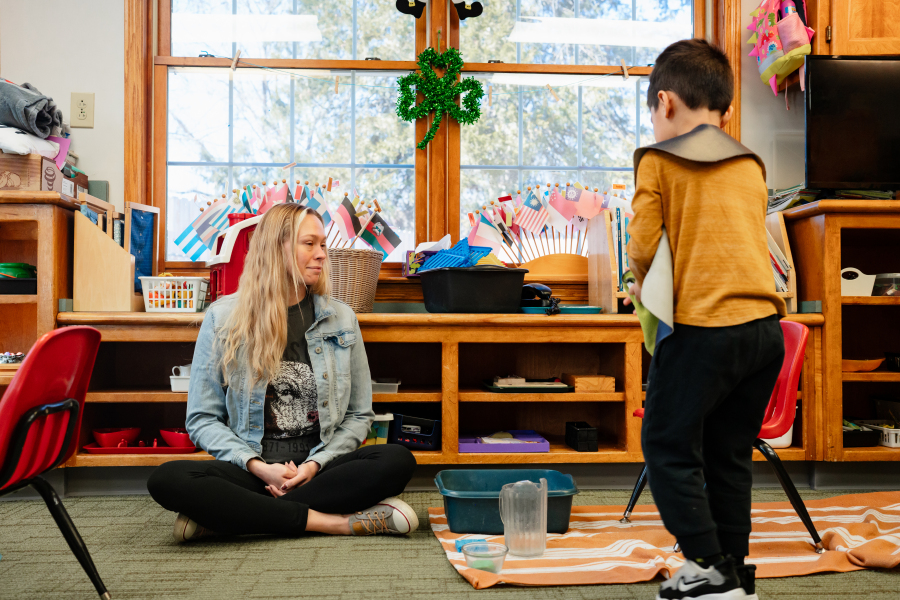 Pre-Kindergarteners participate in the uninterrupted morning work cycle alongside their younger classmates, engaging in self-directed activities and lessons. In the afternoon (1:00-3:00), while younger children rest, they join small-group lessons guided by lead Montessori teachers. This focused time allows for deeper engagement in math and language activities, followed by reading chapter books to develop comprehension skills.